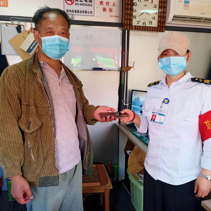 517日上午9點(diǎn),137號車組乘務(wù)員邵煥在房村客運(yùn)站對車廂內(nèi)進(jìn)行消殺清潔工作時(shí),在座位夾縫中發(fā)現(xiàn)了一部手機(jī),便交到了車站值班室妥善保管。原來,乘客程先生下車時(shí)不慎將手機(jī)掉落在車上直接下了車,買東西的時(shí)候才發(fā)現(xiàn)手機(jī)沒了,于是到宣武汽車站尋找,當(dāng)?shù)弥謾C(jī)被乘務(wù)員撿到后,程先生連聲道謝。