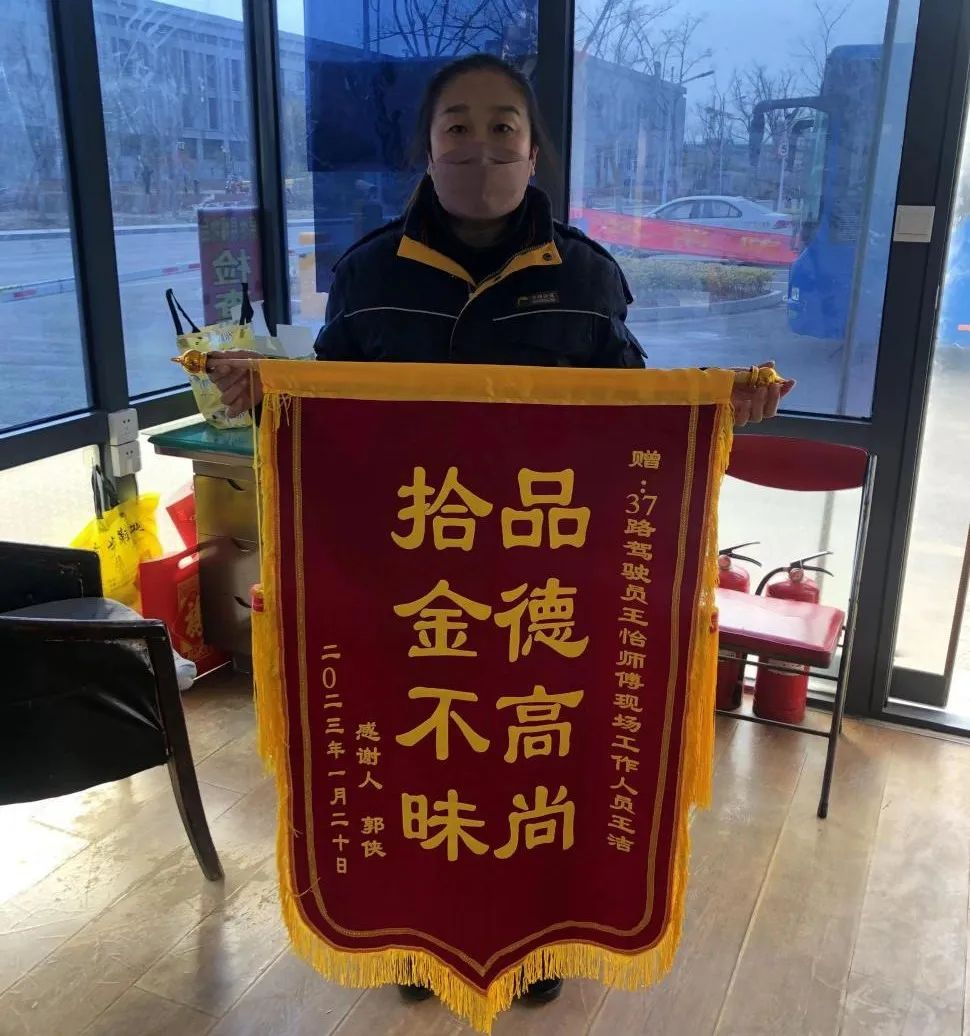 1月19日,失主郭女士通過公交集團(tuán)熱線電話聯(lián)系到車隊管理人員,經(jīng)過車隊的查詢落實后,郭女士與工作人員約好時間前來取回失物。1月20日,郭女士送來了一面錦旗錦旗,并撥打了熱線電話12345表揚(yáng)駕駛員王怡拾金不昧的精神。王怡熱心助人的行為充分體現(xiàn)了徐州公交駕駛員高尚的道德品質(zhì),他用實際行動體現(xiàn)了 “向善、向美、向上”的價值追求,在平凡的崗位上傳遞公交正能量。