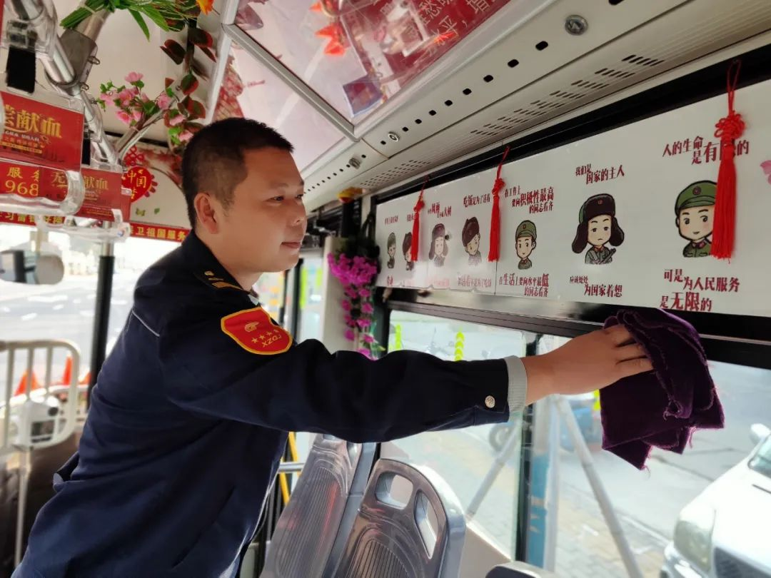 駕駛座上的王石龍雙手把住方向盤,安全平穩(wěn)駕駛著,每到一站,他都會仔細(xì)觀察乘客的上下車情況,并攙扶特需乘客坐到座位上,他用熱情的服務(wù)為乘客送去溫暖。走進(jìn)王石龍的車廂,紅色的主題格外引人矚目,扶手被用紅絲絨布套包裹得嚴(yán)嚴(yán)實(shí)實(shí),一個個的座位上整齊地放置著棉坐墊,車廂內(nèi)溫馨的感覺縈繞著乘客,感到冬日里格外的溫暖。他還自費(fèi)更新了紅色小人書,放置了醫(yī)藥箱、便民袋、針線包、速效救心丸、一次性雨衣等等,細(xì)微之處彰顯了王石龍對工作的用心和對崗位的熱愛。