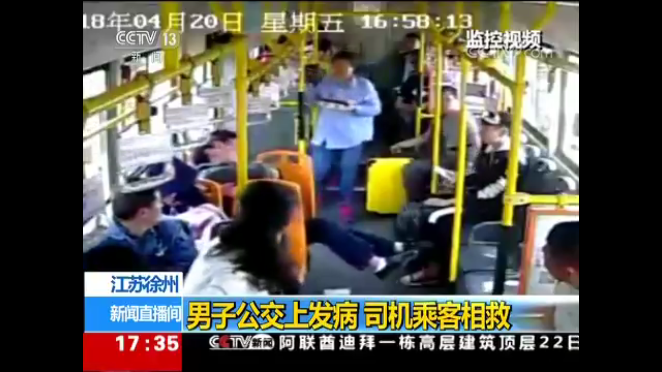 4月20日下午4點(diǎn)58分,26路自編號(hào)5025車從徐州開往賈汪途中,一名坐在車中間座位上的男乘客突然倒在了旁邊乘客身上,口吐白沫,渾身抽搐打著哆嗦,情況十分危急。乘務(wù)員昝昱安和周圍乘客立即上前查看,駕駛員耿德志也急忙停下車趕來。
