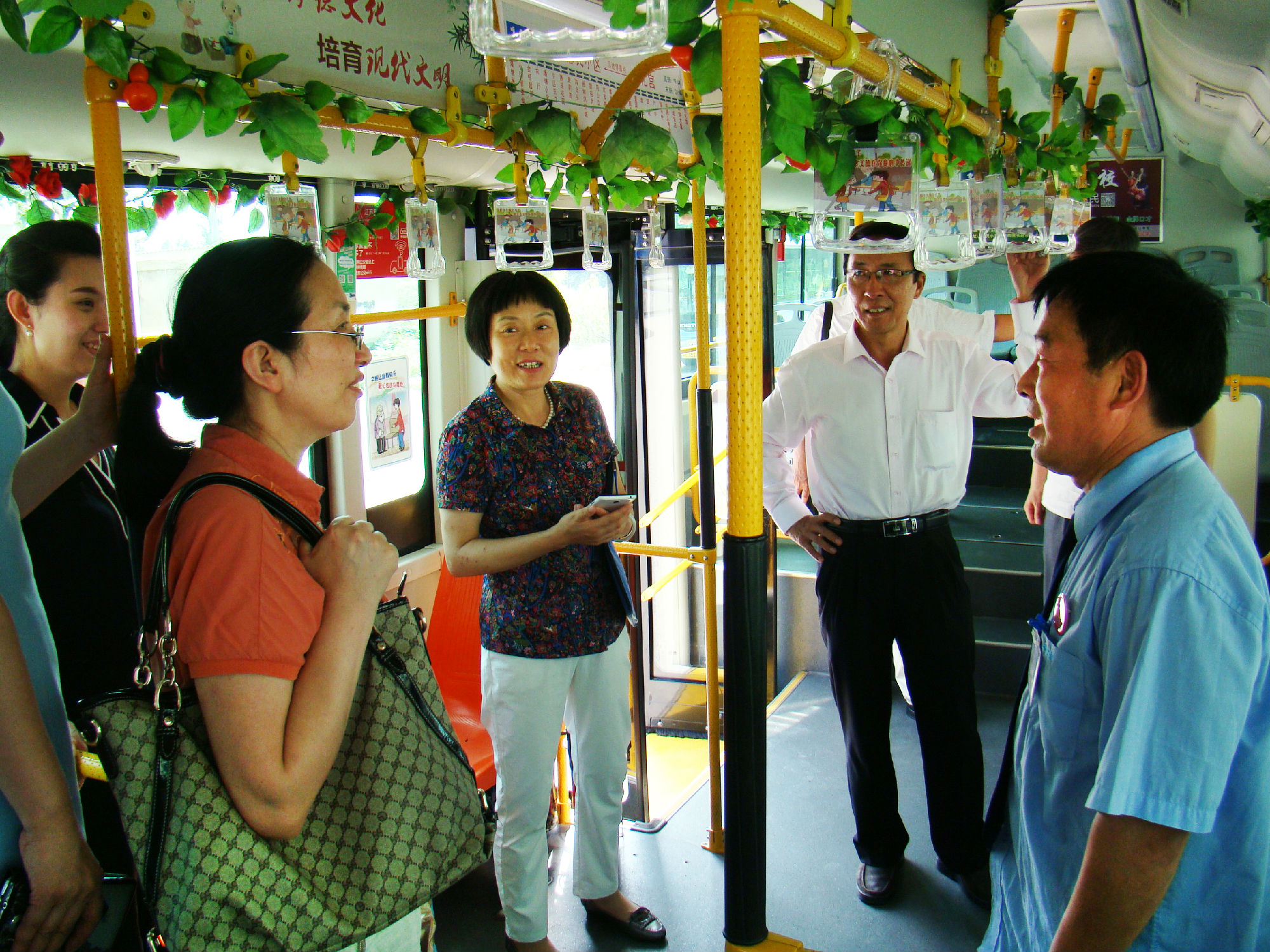 為有效提高老年人乘車安全系數(shù),公司為14路線在車廂內(nèi)設置“老幼病殘孕”愛心專座的基礎上,專門設置了“敬老專座”; 為了給老年乘客提供優(yōu)美的乘車環(huán)境,還在車廂的頂部和前部放置各種綠色植物和鮮花,同時,在駕駛座后面安裝了便民袋,配備常用藥物、老花鏡、針線包、意見簿及公交乘車指南、報紙、老年人專用雨披等物,讓老年乘客登上公交車,就能感受到清新氣息。