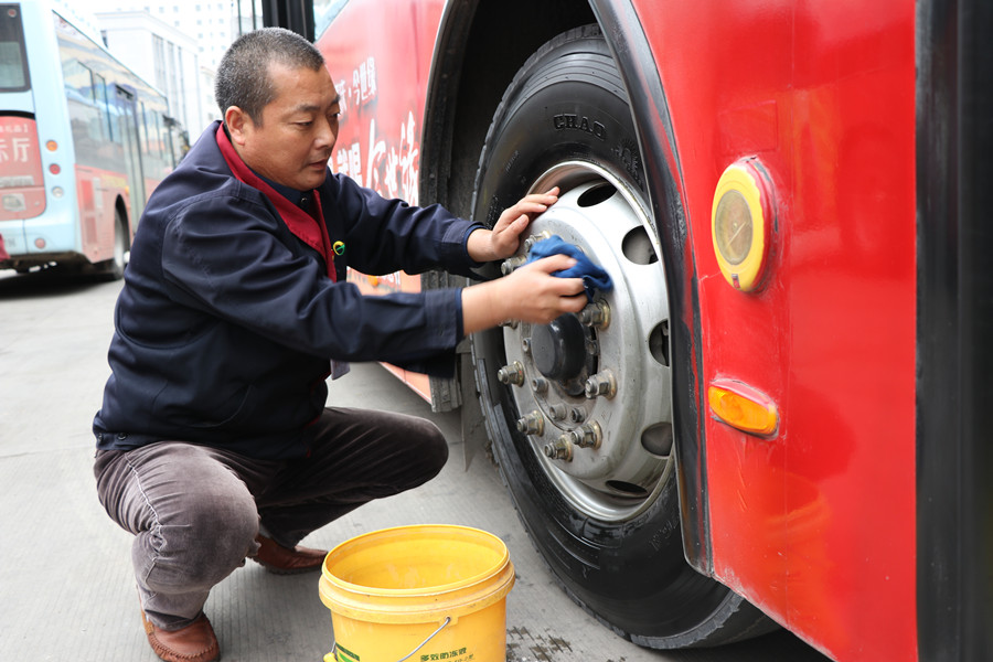 85路線經(jīng)過礦區(qū)路況差,一趟車下來車就很臟了,黨員祁保華把勞動當(dāng)成一種樂趣,只要車輛停下來,他就會拿起刷子,把車身從前到后刷上一遍,再用抹布細(xì)細(xì)擦,輪胎更是一趟一擦,一天8個(gè)來回,他就要擦8遍輪胎。晚上在文化宮跑夜班,都晚上9點(diǎn)了,他還借著微弱的路燈,里里外外把車打掃干凈。在他的帶動下,85路線駕駛員由觀望到比賽,都成了車輛保潔的好手。