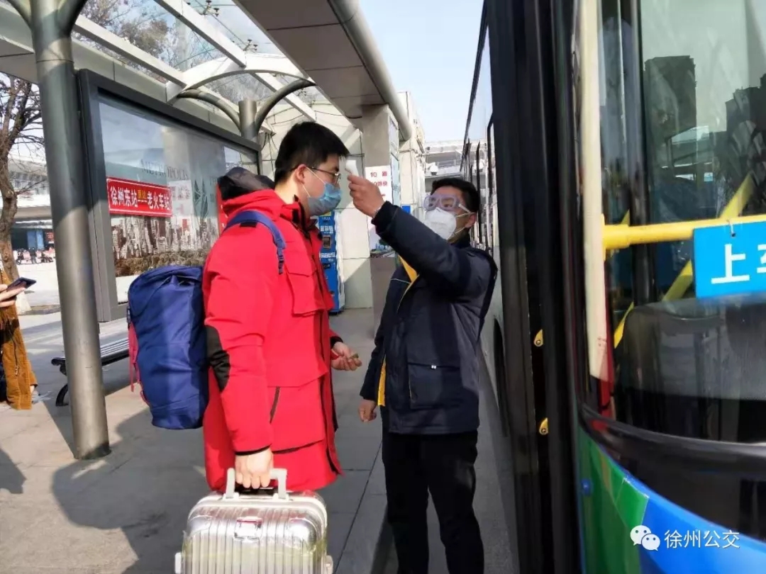 根據(jù)《徐州市新型冠狀病毒感染的肺炎疫情防控應(yīng)急指揮部通告(第1號)》,從1月27日(農(nóng)歷初三)開始,徐州全面暫停徐州市區(qū)城市公共交通(徐州東站至徐州站單向點對點接駁線路除外)和道路客運班線、包車運營(機場定制客運除外),徐州各縣(市、區(qū))也同時停止所有道路客運班線運營。“這8輛車是目前市區(qū)內(nèi)唯一還在運營的公交線路了,雖然乘客不多,但我們依然要做到萬無一失。”張經(jīng)理告訴記者,根據(jù)上級部門的要求,徐州公共交通集團(tuán)順通巴士公司在疫情防控期間每天每班配備8輛車(分上午、下午、夜班三個班次),40余名駕駛員輪崗,運營時間為6:00-24:00(每天直到夜里高鐵運營結(jié)束)。這8輛車的運行路線為高鐵徐州東站——徐州火車站單程點對點接駁班車。每天服務(wù)乘客約500-600人次。為確保疫情防控,所有車輛堅持做到每趟通風(fēng),1趟1消毒,并使用空氣消毒機進(jìn)行消毒。同時,對所有上車乘客進(jìn)行體溫測量,嚴(yán)禁不戴口罩乘客上車,并對當(dāng)班駕駛員每趟運營結(jié)束后都進(jìn)行體溫測量。