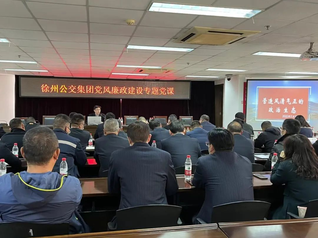 為深入學習貫徹落實黨的二十大精神,堅定不移推進全面從嚴治黨向縱深發(fā)展,營造集團風清氣正的政治生態(tài),1117日,徐州公交集團開展黨風廉政建設(shè)專題黨課。公交集團黨委副書記、總經(jīng)理袁夫松主持會議,集團機關(guān)部室、基層單位負責人等50余人參加學習。