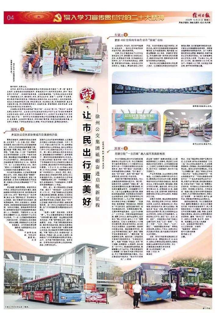 12月20日《徐州日報》04版刊登文章《變.讓市民出行更美好——徐州公交集團砥礪奮進啟航新征程》