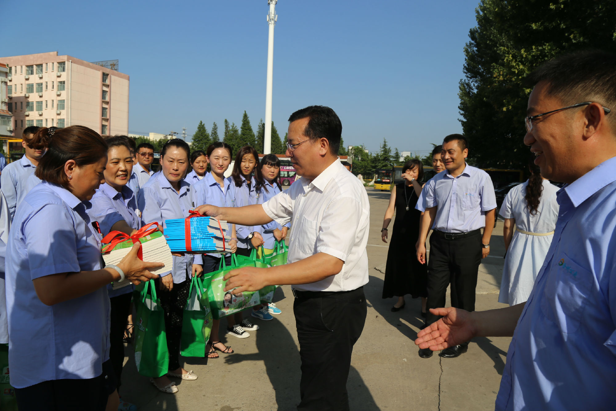 劉洪印親切地與公交駕駛員一一握手,對公交員工克服酷熱天氣堅守工作崗位,堅持為市民提供熱情周到的服務(wù),表示誠摯謝意和深切問候,并特別叮囑大家要注意勞逸結(jié)合,注意身體健康,杜絕疲勞駕駛,為市民安全出行保駕護(hù)航。隨后他向在場的公交員工送上了慰問品和工會書籍。公交員工接過慰問品,紛紛激動表示:“謝謝領(lǐng)導(dǎo)關(guān)心!謝謝!”