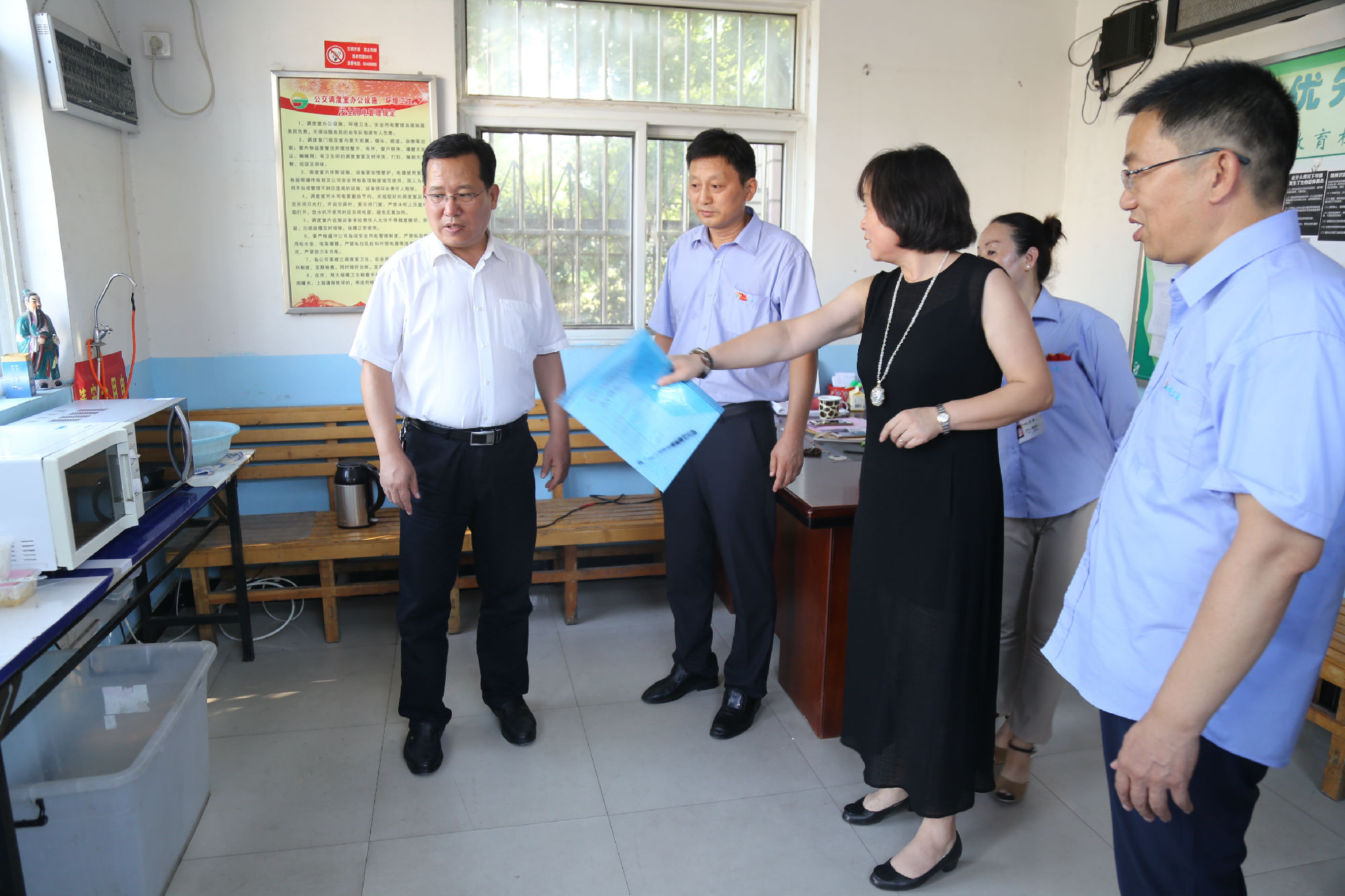 接著,劉洪印走進(jìn)調(diào)度室,察看了調(diào)度室的工作環(huán)境和降溫措施,關(guān)切地詳細(xì)詢問了駕駛員的生產(chǎn)生活、用餐休息等情況,并對公交設(shè)置愛心驛站,關(guān)心關(guān)愛乘客和環(huán)衛(wèi)等室外工作者給予了高度評價。