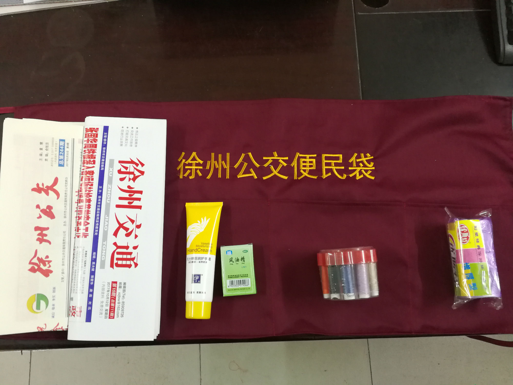 近日,徐州公交在“四星級(jí)”駕駛員車輛上開展“便民服務(wù)袋進(jìn)車廂活動(dòng)”。