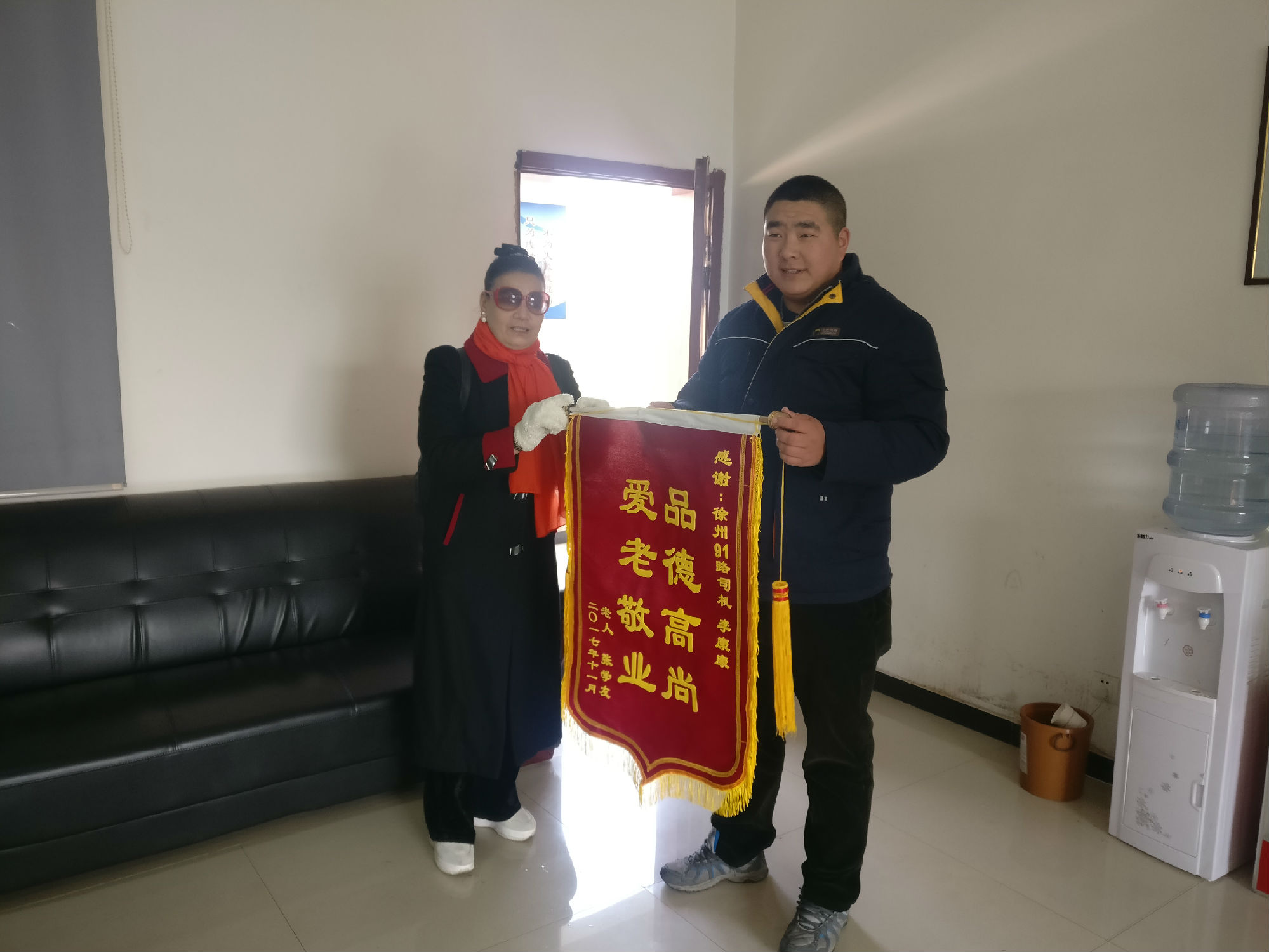 11月21日,李康康正執(zhí)行末班車的任務(wù),夜晚寒冷,車上乘客也比較少。即將到達(dá)終點(diǎn)站時(shí),車上僅剩一位年近70的張女士,李康康看她神情慌張地看著窗外。經(jīng)詢問,得知張女士剛搬到新城區(qū)住不久,迷路了。考慮到張女士年齡較大,于是就把想送張女士回家的想法向線路長及公司做出了匯報(bào)。經(jīng)批準(zhǔn)后,他開車將張女士送回了家。事后,張女士為了表達(dá)謝意,給李康康送來一面錦旗。