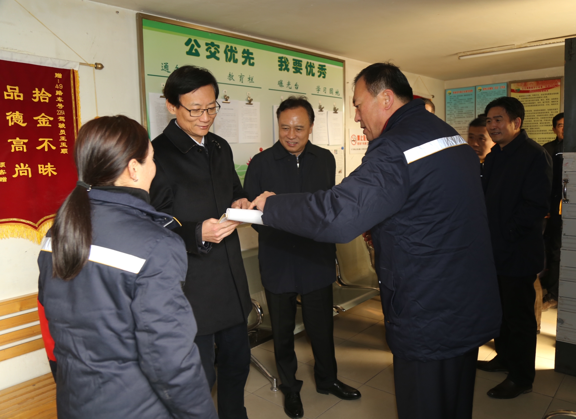 1月18日上午,徐州市副市長趙立群、副秘書長陳剛等領導,在市交通運輸局局長蔡前鋒、副局長李開春,公司董事長、總經(jīng)理杜紅軍等的陪同下,來到公交保養(yǎng)廠調(diào)研視察。