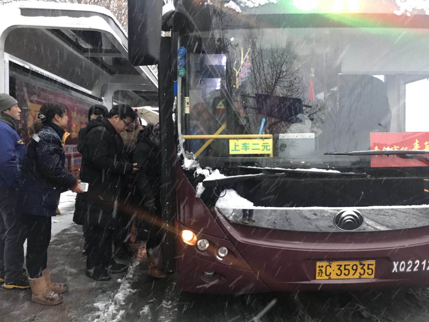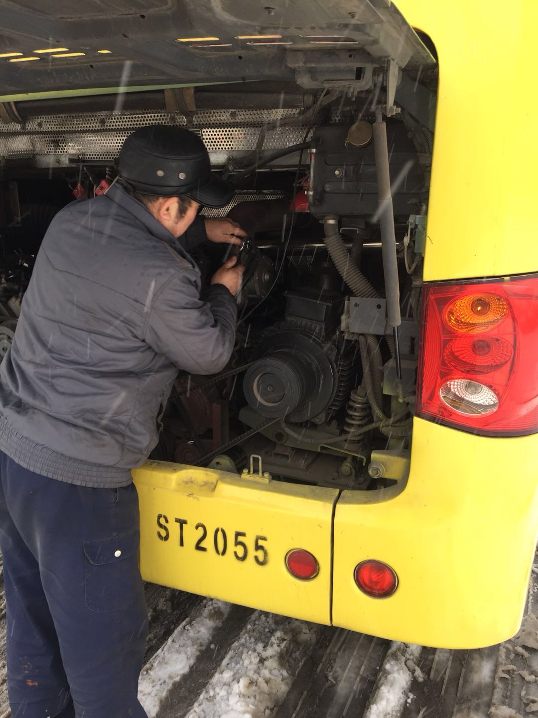 為保證冰雪嚴(yán)寒天氣公交車運(yùn)力正常,公司提前對2300余輛公交車進(jìn)行了安全性能的全面普查及換季保養(yǎng)作業(yè)項(xiàng)目,進(jìn)一步加強(qiáng)車輛的日常維護(hù)及“三檢”,嚴(yán)格執(zhí)行維保規(guī)范,確保車輛設(shè)備的防凍液冰點(diǎn)值不低于-15℃,并提前更換了-10號柴油,防止燃?xì)廛囕v冰堵。修理人員冒著風(fēng)雪,手凍得通紅仍堅(jiān)持在現(xiàn)場搶修車輛;智能調(diào)度平臺(tái)利用3G視頻實(shí)時(shí)監(jiān)控線路運(yùn)營情況,利用車載語音不斷播放安全提示,做好雪天行車安排;公交出租450輛出租車全部出車……4日晚,市區(qū)雪深已達(dá)375px,氣溫-7℃。大雪造成高鐵晚點(diǎn)6小時(shí),10路線立即增派7輛加班車增加24個(gè)班次,直至5日凌晨4:07最后一班車發(fā)車,堅(jiān)決不滯留一名乘客,全力保障了雪天市民的安全出行。