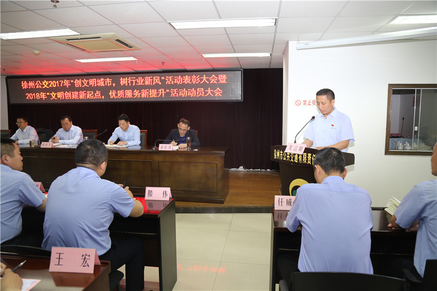 5月10日上午,有限公司召開“2017‘創(chuàng)文明城市、樹行業(yè)新風(fēng)’總結(jié)表彰暨2018‘文明創(chuàng)建新起點(diǎn),優(yōu)質(zhì)服務(wù)新提升’活動(dòng)動(dòng)員大會(huì)”,主要任務(wù)是對(duì)全公司文明城市創(chuàng)建常態(tài)長(zhǎng)效工作進(jìn)行部署,動(dòng)員全體干部員工認(rèn)清形勢(shì)、再鼓干勁,開啟文明創(chuàng)建新征程,再創(chuàng)優(yōu)質(zhì)服務(wù)新提升。公司董事長(zhǎng)、總經(jīng)理杜紅軍,工會(huì)主席竇同銀,調(diào)研員張同剛、祖伯鴻,相關(guān)部室負(fù)責(zé)人,營(yíng)運(yùn)公司經(jīng)理、書記、服務(wù)主管,車隊(duì)長(zhǎng)、先進(jìn)個(gè)人代表等87人參加了會(huì)議。