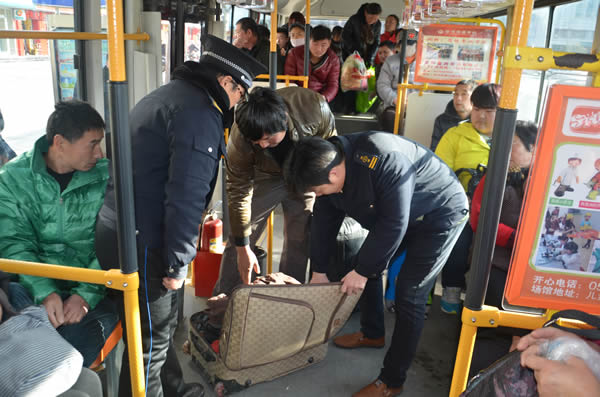 12月2日,在第三個(gè)全國(guó)交通安全日來臨之際,公交服務(wù)督導(dǎo)隊(duì)聯(lián)合公安公交管理大隊(duì)開展了危險(xiǎn)品大檢查。檢查組分為5個(gè)小隊(duì),分別在火車站廣場(chǎng)、副廣場(chǎng),東甸子公交站臺(tái),對(duì)公交車乘客攜帶物品進(jìn)行仔細(xì)檢查,確保公交乘客安全。